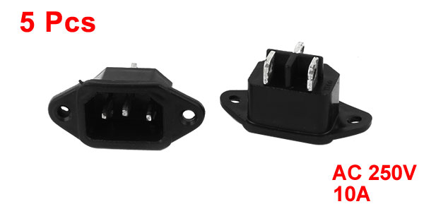 AC 250V 10A IEC320 C14 3 Pin Male Plug Inlet Black Plastic Power Socket 5 Pcs