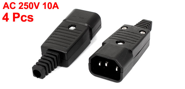 AC 250V 10A IEC320 C14 3 Pin Male Plug Power Adapter Jack Connector 4 Pcs