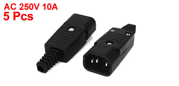 AC 250V 10A IEC320 C14 3 Pin Male Plug Power Adapter Jack Connector 5 Pcs
