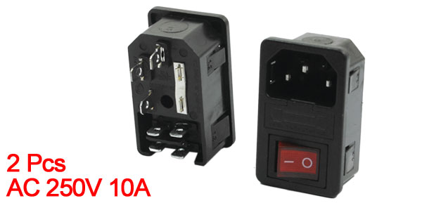 AC 250V 10A Red Switch C14 Male PCB Board Power Adapter Socket 2Pcs