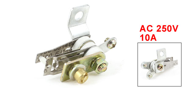 DetailsAC 250V 10A Rice Cooker Repairing Metal Temperature Control Heating Thermostat  Product Name Bimetal Thermostat Controller Fit for Electric Cooker Power AC 250V 10A Screw Hole Diameter 3.5mm/ 0.14" Fix Hole Diameter 5mm/ 0.197" Overall Size 4.5 x 3.2 x 3cm/ 1.8" x 1.3" x 1.2"(L*W*T) Material Metal, Ceramic Color Gold Tone, Silver Tone, White Weight 23g Package Content 1 x Bimetal Thermostat Controller