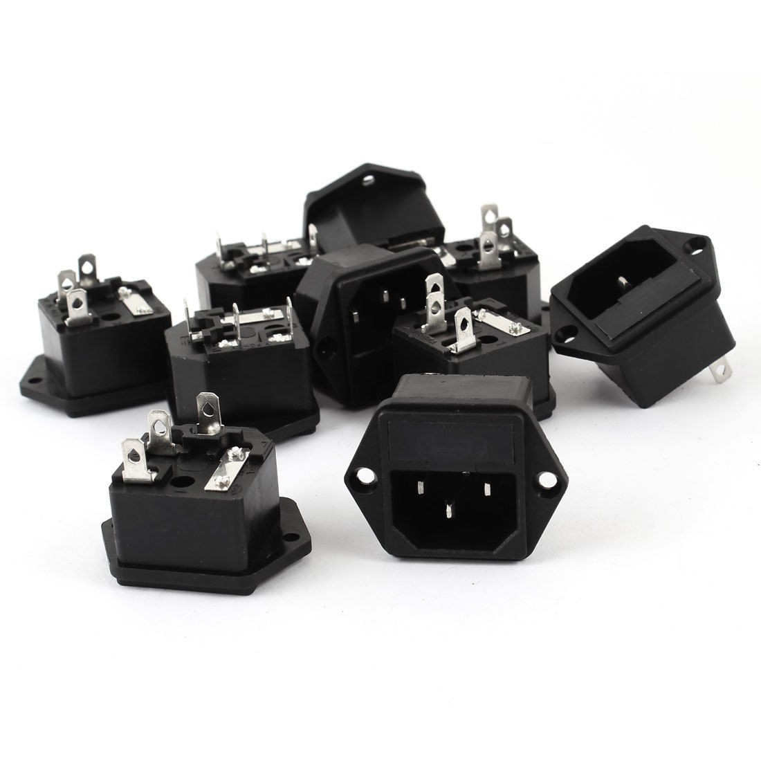 AC 250V 10A Screw Mounted 3 Pin C14 Inlet Power Socket w 5mm x 20mm Fuse 10Pcs