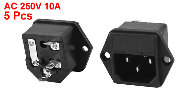 AC 250V 10A Screw Mounted 3 Pin C14 Inlet Power Socket w 5mm x 20mm Fuse 5Pcs