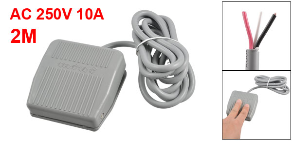 Product Name Foot Pedal Switch Model NO. TFS-201 Action Type Momentary Contact Type SPDT (1NO 1NC) Voltage AC 250V 10A Size 8 x 8 x 3.5cm / 3.1" x 3.1" x 1.4" (L*W*T) Cable Length 2m/ 78.7" Material Plastic, Metal Color Gray Weight 210g Package Content 1 x Foot Pedal Switch - Reviews