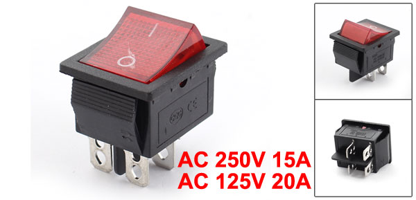 Pins 4-Pin Main Color Red, Black Product Name Rocker Switch Rated AC 250V 15A, AC 125V 20A Net Weight 12g Country of Manufacture CHINA Package Content 1 x Rocker Switch Material Plastic, Metal Contact Type DPST Total Size 32 x 25 x 35mm/1.2" x 1" x 1.3"(L*W*H) Positions 2-Position Mount Size 25 x 21mm/1" x 0.83"(L*W) - Reviews