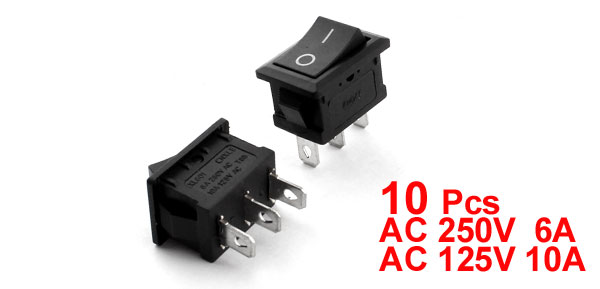 AC 125V 10AOverall Size 21 x 17 x 15mm /0.83" x 0.67" x 0.6" (L*W*T) Mounting Size 17 x 12mm / 0.67" x 0.47" (L*W) Color Black Material Plastic, Metal Total Weight 35g Package Content 10 Pcs x Rocker Switches - Reviews