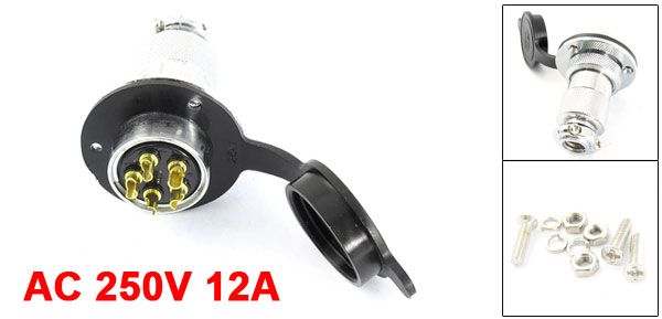 AC 250V 12A Dustproof Metal Chassis 5-Pin Male Female Aviation Plug Connector