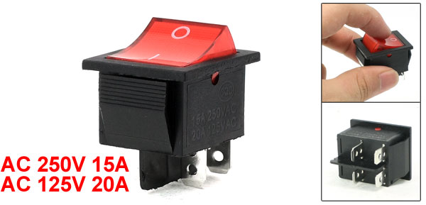 Product Name Rocker Switch Poles DPDT(I/O) Terminals 4 Pin Rated AC 250V 15A
