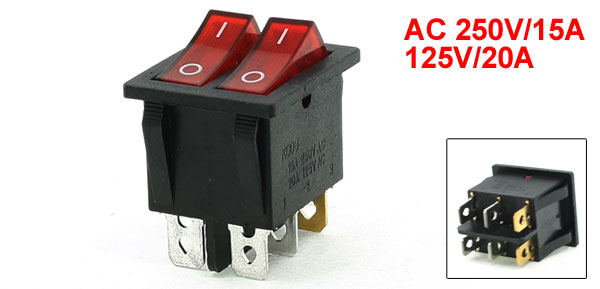 Product Name Rocker Switch Poles SPST Terminals 6 Pin (On - Off) Rating Voltage 15A 250V AC, 20A 125V AC Total Size(Each One) 3.1 x 2.6 x 3.8cm / 1.2" x 1" x 1.5"(L * W * T) Mount Hole Size 26.8X 21.2cm / 1.05" x 0.83"(L*W) Light Color Red Color Black,Red Material Plastic, Metal Total Weight 15g Package Content 1 x Rocker Switch - Reviews
