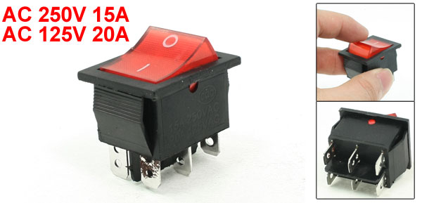 Product Name Rocker Switch Poles DPDT(I/O) Terminals 6 Pin Rated AC 250V 15A