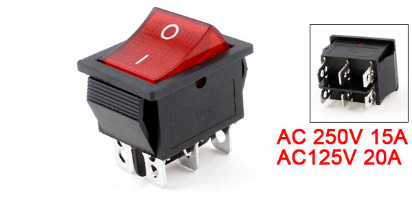 Item Name Rocker Switch Type On/ On (DPDT) Voltage & Current AC 250V 15A AC125V 20A Overall Size 3.3 x 2.5 x 3.5 cm / 1.3" x 0.98" x 1.4"(L*W*H) Mount Hole Size 2.9 x 2.1cm / 1.14" x 0.83"(L*W) Color Red, Black Material Plastic, Metal Total Net Weight 13g Package Content 1 x Rocker Switch - Reviews