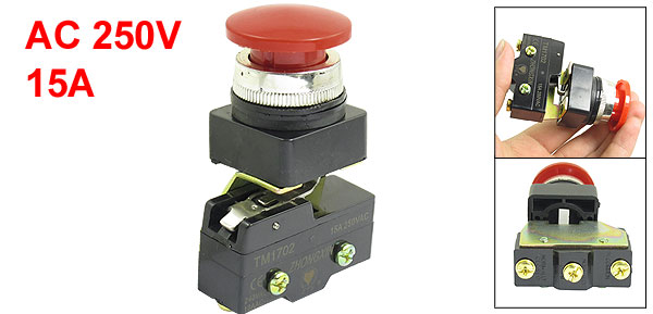 Product Name Micro Switch Model No. TM1702 Actuator Action Momentary Red Mushroom Head Push Button Contact Type 1 NO 1 NC 1 Com Ui / Ith AC 250V 15A AC-15 Ue: 240V Ie: 10A