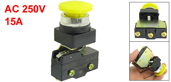 Product Name Micro Switch Model No. TM1702 Actuator Action Momentary Yellow Mushroom Head Push Button Contact Type 1 NO 1 NC 1 Com Ui / Ith AC 250V 15A AC-15 Ue: 240V Ie: 10A