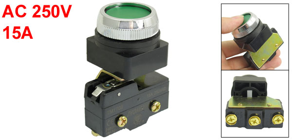AC 250V 15A 1NO 1NC 30mm Thread Momentary Green Flat Push Button Micro Switch