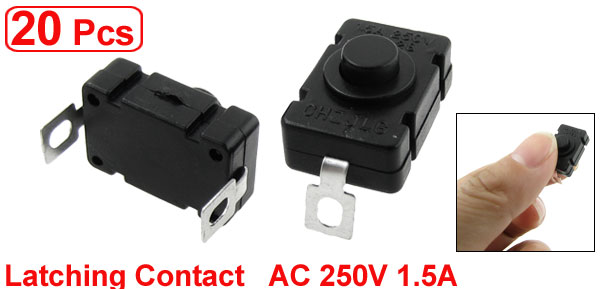 AC 250V 1.5A 2 Pin On Off Torch Latching Push Button Switch 20 Pcs Ddgbw