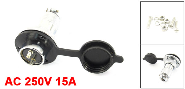 AC 250V 15A 2 Pins Metal Chassis Male Female Aviation Plug Connector w Cover