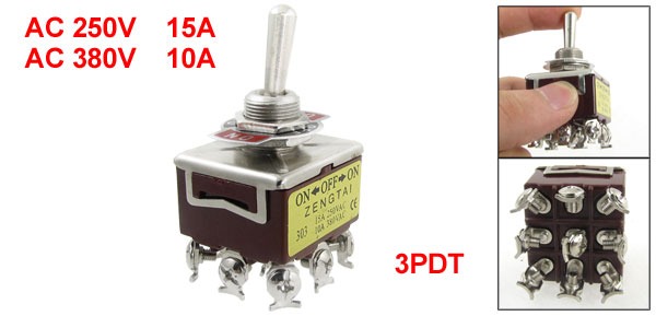 AC 250V 15A 380V 10A ON/OFF/ON 3 Position 3PDT 9 Screw Terminals Toggle Switch