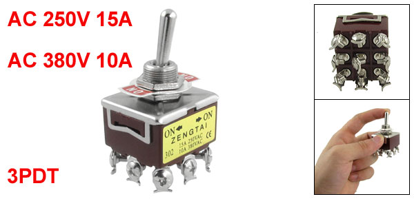 AC 250V 15A 380V 10A ON/ON 2 Position 3PDT 9 Screw Terminals Toggle Switch