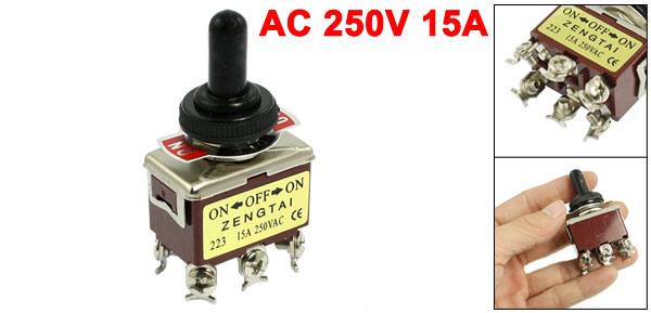 Product Name Toggle Switch Type DPDT(Momentary) Position 3(On/Off/On) Voltage & Current 15A 250V AC Main Body Size 30 x 20mm/ 1.2" x 0.8"(L*W) Overall Height 60mm/ 2.4" Material Metal Color Black, Burgundy Weight 40g Package Content 1 x Toggle Switch - Reviews
