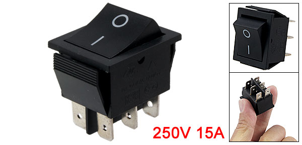 AC 250V 15A 6 Pin DPDT ON/ON I/O 2 Position Snap In Boat Rocker Switch
