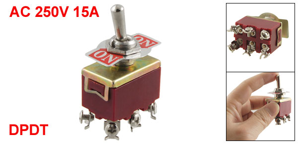 Product Name Toggle Switch Type DPDT (ON/ON) Position 2 Voltage, Current AC 250V 15A Mounting Hole Diamter 12mm / 0.456" Main Body Size 30 x 20 x 21mm/ 1.2" x 0.8" x 0.83" (L*W*H) Overall Height 57mm / 2.2" Material Metal, Resin Weight 35g Package Content 1 x Toggle Switch - Reviews