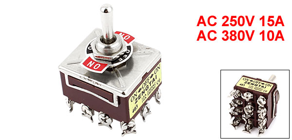 AC 250V 15A AC380V 10A 12 Pin 3 Position ON/OFF/ON 4P2T Toggle Switch