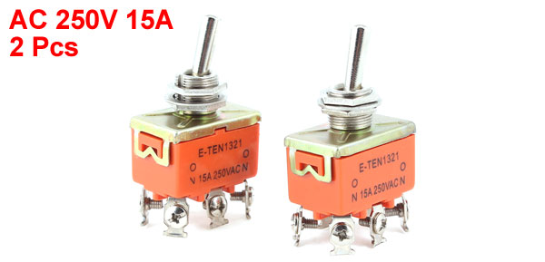 Product Name Toggle Switch Rating AC 250V 15A Pin Number 6 Pins Position 2 Position(On/On) Type DPDT (Latching) Screw Diameter 3mm Total Size(Approx.) 30 x 19 x 58mm / 1.2" x 0.75" x 2.3"(L*W*T) Material Metal, Plastic Color Orange, Silver Tone Weight 60g Package Content 2 x Toggle Switch - Reviews
