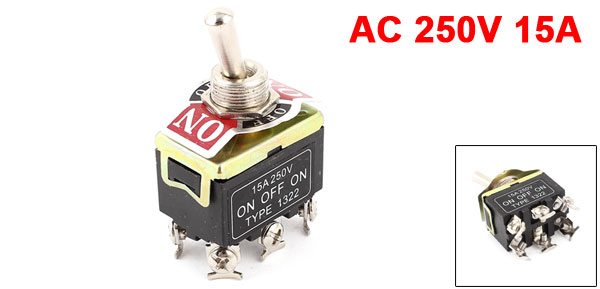 AC 250V 15A DPDT ON/OFF/ON 3 Position 6 Pin Toggle Switch Black