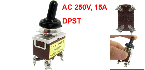 AC 250V 15A DPST On/Off 2 Way 4 Screw Terminals Toggle Switch w Waterproof Boot