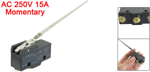 Product Name Micro Switch Model No. Z-15HW24-B Actuator Type Low-Force Hinge Lever Actuator Action Momentary Contact Type 1 NO, 1 NC, 1 Com Terminal Type Screw Terminals Ui / Ith AC 250V 15A Rated 1/8HP 125VAC / 1/4HP 250VAC