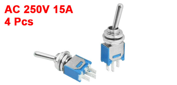 Product Name Toggle Switch Model SMTS-102 Type SPDT (Latching) Position 2 Positions (ON/OFF) Voltage, Current AC 250V 15A Mounting Thread Diameter 5 mm / 0.2" Main Body Size 8 x 5 x 8mm / 0.3" x 0.2" x 0.3" (L*W*H) Overall Height 2.8cm / 1.1" Color Blue Net Weight 10g Package Content 4 x Toggle Switch - Reviews