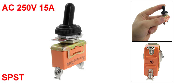 AC 250V 15A ON/OFF SPST 2 Way 2 Screw Terminals Toggle Switch + Waterproof Boot