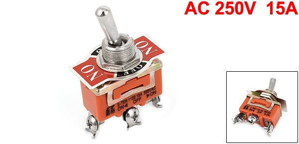 Product Name Toggle Switch Model E-TEN 1122 Type SPDT(Latching) Position 3(ON/OFF/ON) Terminal Number 3 Voltage & Current AC 250V 15A