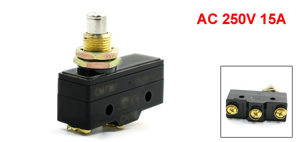 Product Name Micro Limit Switch Model No. CM-1307 Actuator Action Momentary Actuator Type High Push Plunger Power AC 250V 15A Contact Configuration 1NO,1NC(SPDT) Switch Body Size 5 x 1.7 x 2.5cm / 2" x 0.7" x 1"(L*W*H) Fixing Holes Dia. 0.4cm / 0.16" Button Height 1.5cm / 0.6" Material Plastic, Metal Color As Picture Show Net Weight 50g Package Content 1 x Micro Limit Switch - Reviews
