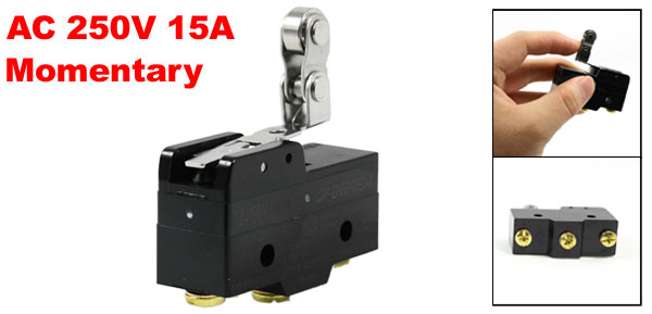 Product Name Micro Switch Model No. RZ-15GW2277-B3 Actuator Type Short Hinge Roller Lever Actuator Action Momentary Contact Type SPDT 1 NO 1 NC 1 Com Terminal Type 3 Screw Terminals Ui / Ith AC 250V 15A Power 15A 125V/250V/480VAC