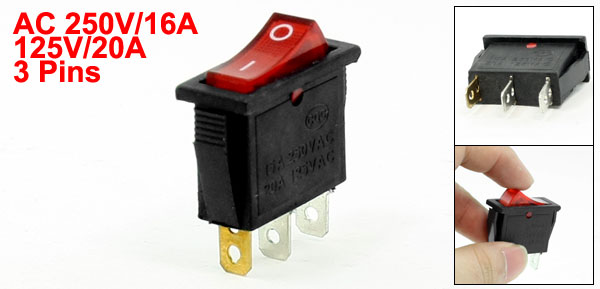 AC 250V/16A 125V/20A 3 Pins SPST I/O Red Light Snap in Boat Rocker Switch