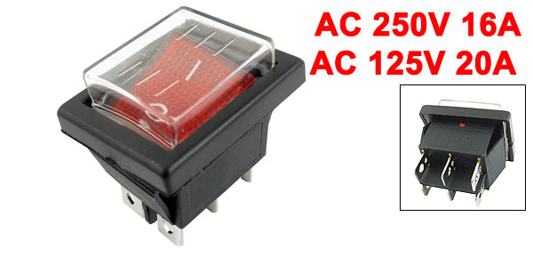 AC 250V 16A 125V 20A DPDT 2Position Red Button Rocker Switch w Waterproof Cover