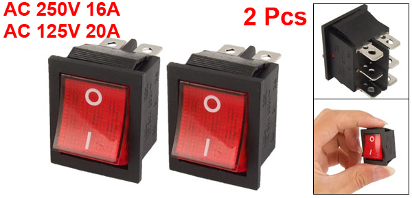 AC 250V 16A 125V 20A Red Light 6 Pin DPDT ON/ON Snap In Boat Rocker Switch 2 Pcs