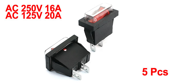 AC 250V/16A 125V/20A SPST Red Light Waterproof Snap in Boat Rocker Switch 5pcs