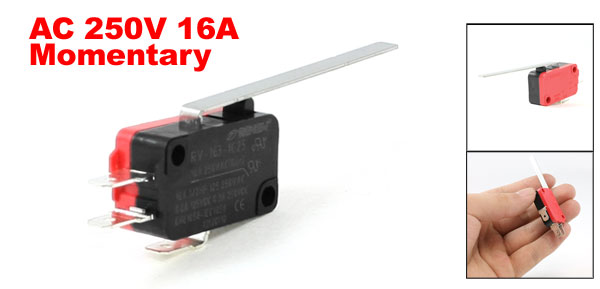 AC 250V 16A SPDT Long Straight Hinge Lever Momentary Miniature Micro Switch