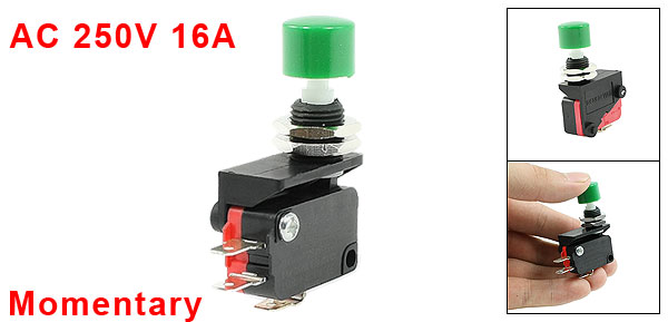 AC 250V 16A SPDT Momentary Green Push Button Miniature Micro Switch