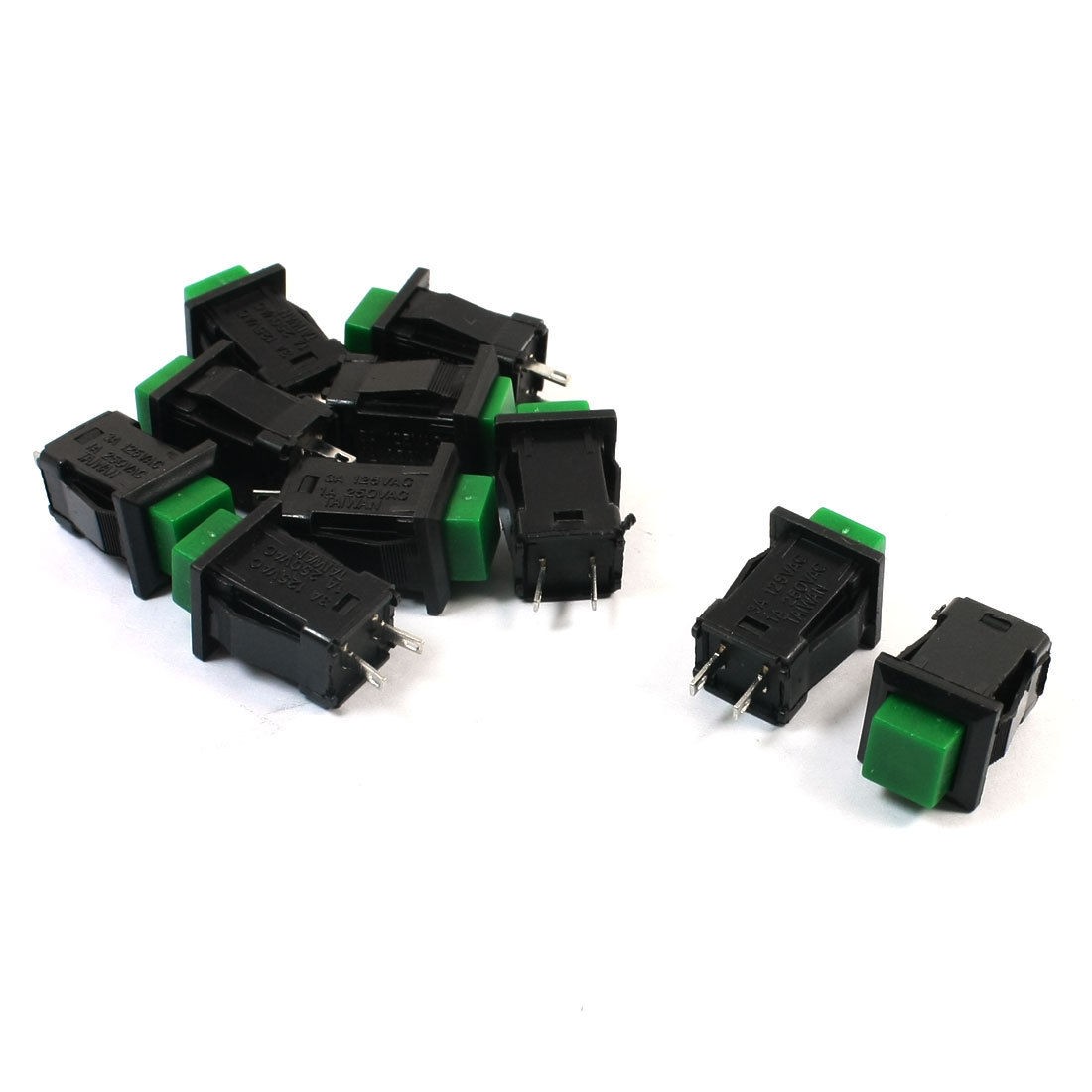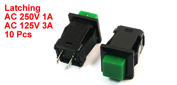AC 125V 3APin Pitch 6mm/ 0.24" Button Size 9 x 9mm/0.35" x 0.35"(L*W) Mount Size 12 x 11 x 17mm/0.47" x 0.43" x 0.67"(L*W*H) Each Size 22 x 1.4 x 1.4cm / 0.87" x 0.47" x 0.57" (L x W x H) Color Green ,Black Material Plastic and Metal Weight 29g Package Content 10Pcs x Square Head Push Button Switch - Reviews