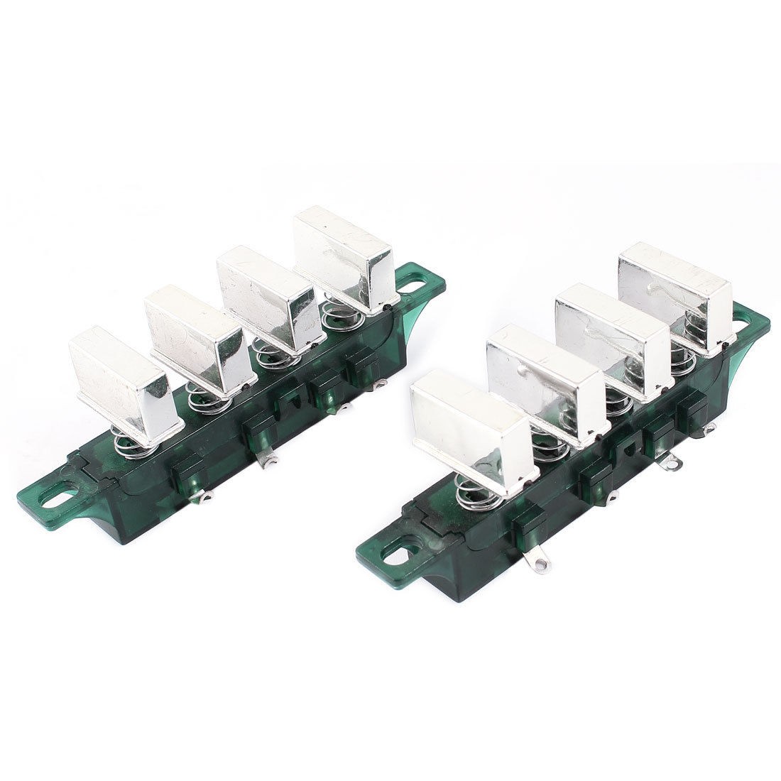 Product Name Interlock Push Button Switch Type 4 Keys 3 Poles Button Number 4 Voltage/ Current AC 250V 1A Overall Size 104 x 26 x 39mm/ 4.1" x 1" x 1.5" (L*W*T) Mount Hole Size 8 x 5mm/ 0.31" x 0.2"(L*W) Push Button Size(Each) 2.5 x 1cm/1" x 0.4" (L*W) Material Plastic, Metal, Electronic Part Color Green, Silver Tone Net Weight 51g Package Content 2 x Interlock Push Button Switch - Reviews