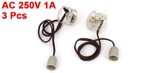 AC 250V 1A Momentary Pull Cord Plastic Shell Switch Clear 3pcs for Ceiling Fan