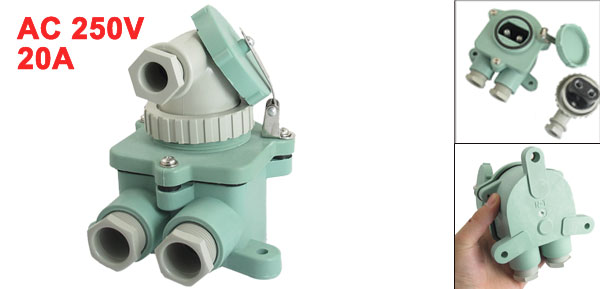 DetailsAC 250V 20A 2 Pole Water Resistant Marine Plug Socket Set Z-M/T-MB  Product Name Marine Plug Socket Set Model Z-M/T-MB Main Material Plastic Pole 2 Pole Rated Voltage AC 250V Rated Current 20A Total Size 135 x 115 x 130mm/ 5.3" x 4.5" x 5.1" (L*W*T) Junction Hole Dia 20mm/ 0.79" External Color As Picture Shown Weight 436g Package Content 1 x Marine Plug Socket Set