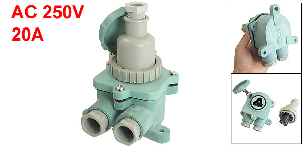 DetailsAC 250V 20A 2P+E Water Resistant Marine Plug Socket Set Z-1M/T-1MA  Product Name Marine Plug Socket Set Model Z-1M/T-1MA Main Material Plastic Pole 2P+E Rated Voltage AC 250V Rated Current 20A Total Size 135 x 115 x 150mm/ 5.3" x 4.5" x 5.9" (L*W*T) Junction Hole Dia 20mm/ 0.79" External Color As Picture Shown Weight 454g Package Content 1 x Marine Plug Socket Set