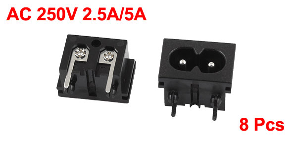 AC 250V 2.5A/5A IEC320 C8 Male Plug Power Inlet Socket Adapters 8 Pcs
