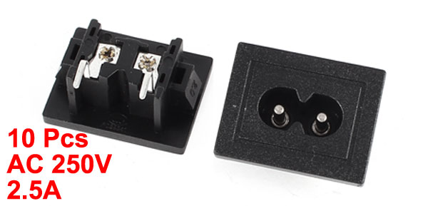 AC 250V 2.5A IEC320 C8 Male Plug Clamping Mount Inlet Socket Adapter 10 Pcs