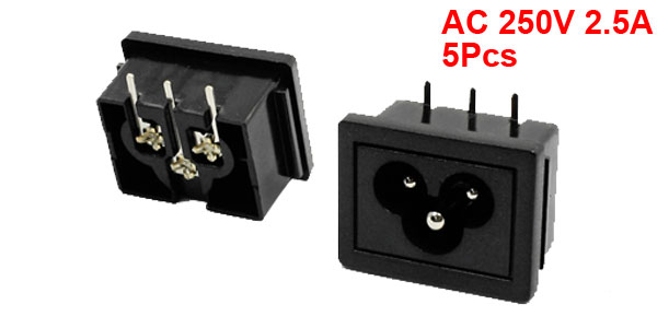 AC 250V 2.5A Power Supply C6 Socket Inlet Adapter Connector 5Pcs