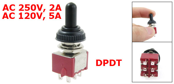 AC 250V 2A 120V 5A ON/OFF/ON 6 Pins DPDT Toggle Switch w Waterproof Cover Cap
